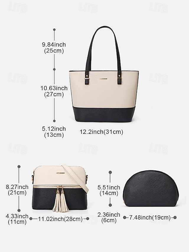 Gender: Women’s, Type: Coin Purse, Crossbody Bag, Shoulder Bags, Material: PU Leather, Quantity: 3 Pieces, Embellishment: Zipper, Tassel, Pattern: Patchwork, Solid Color, Detachable strap: Detachable, Adjustable strap: Adjustable, Occasion: Office, Casual Daily, Width (cm): 13, Height (cm): 27, Length (cm): 31, Function: Large Capacity, Multi Carry, Category: Bag Set,