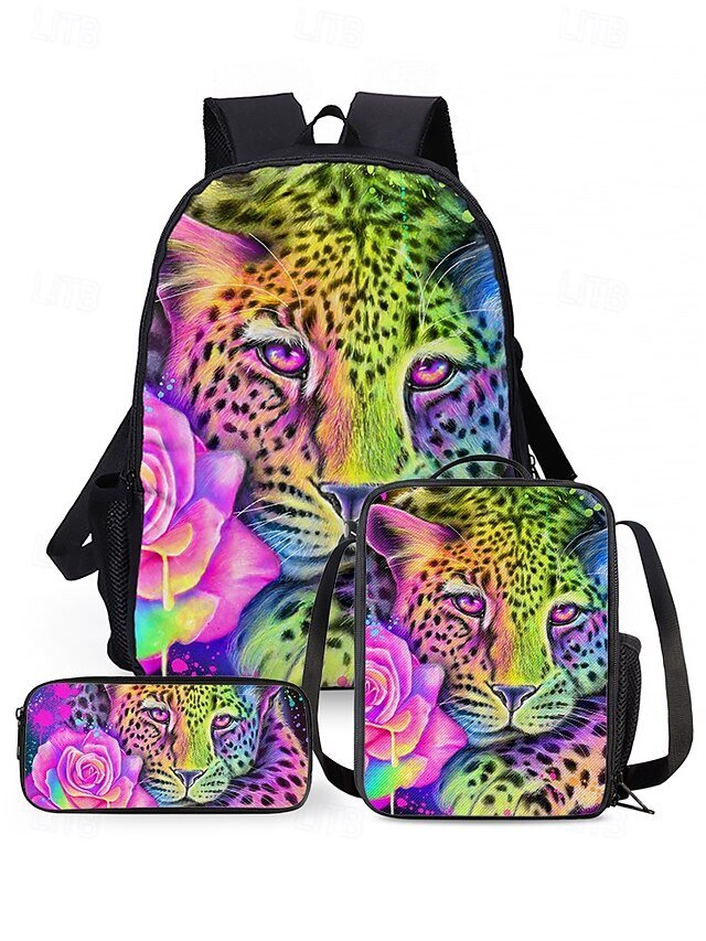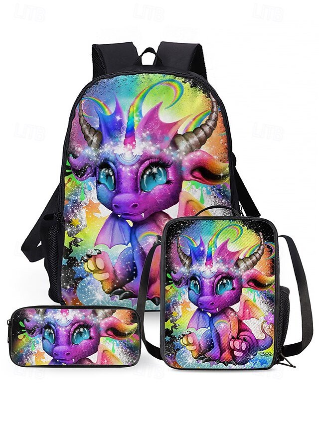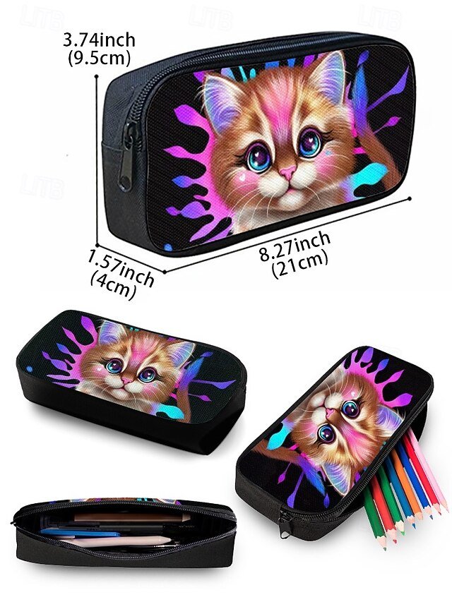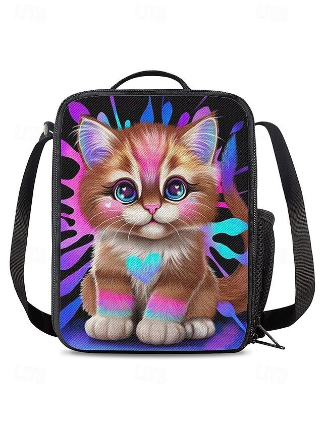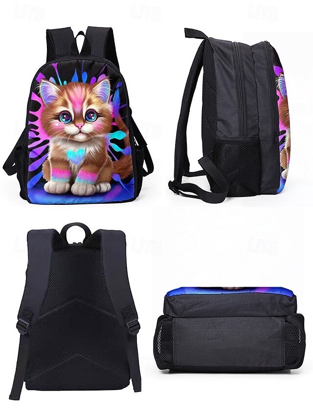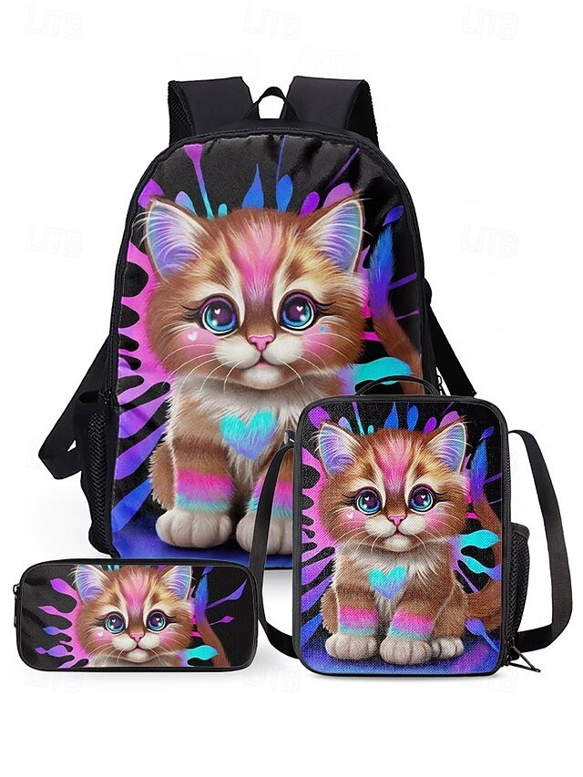 Kids 3-piece colorful cat backpack set (with insulated lunch bag