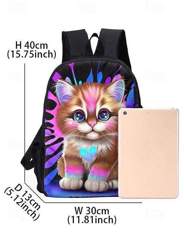 Gender: Kid’s, Type: School Bag Bookbag, School Backpack Bookbag, Material: Oxford Cloth, Embellishment: Zipper, Pattern: Cat, Occasion: School, Daily, Outdoor, Width (cm): 30, Height (cm): 40, Function: Lightweight, Large Capacity, Category: Backpack,
