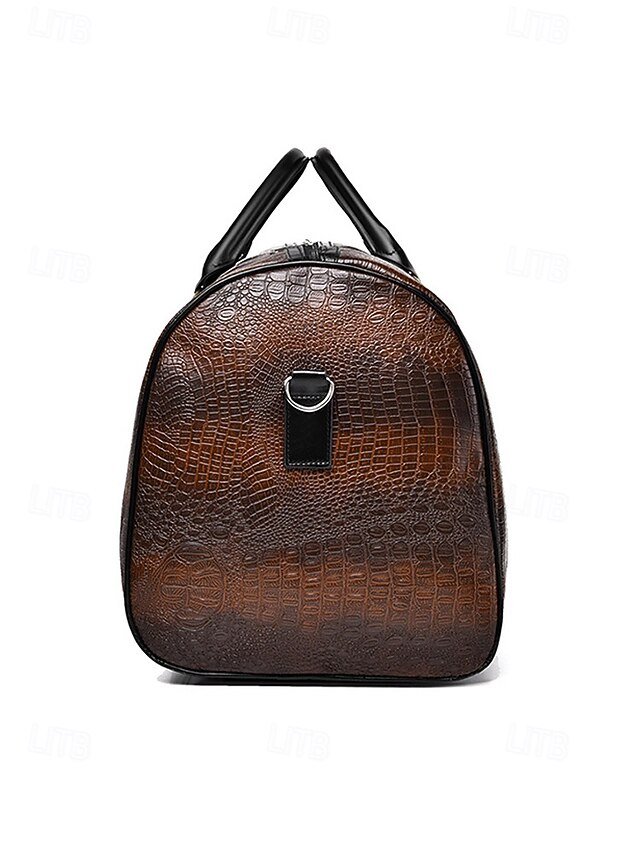 Men’s Crocodile Pattern Faux Leather Weekender Bag with