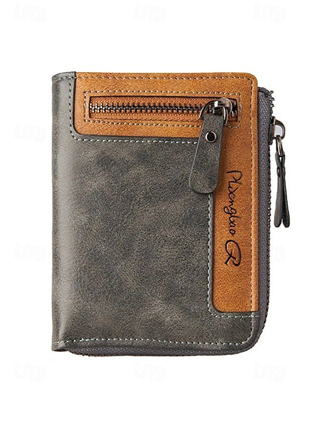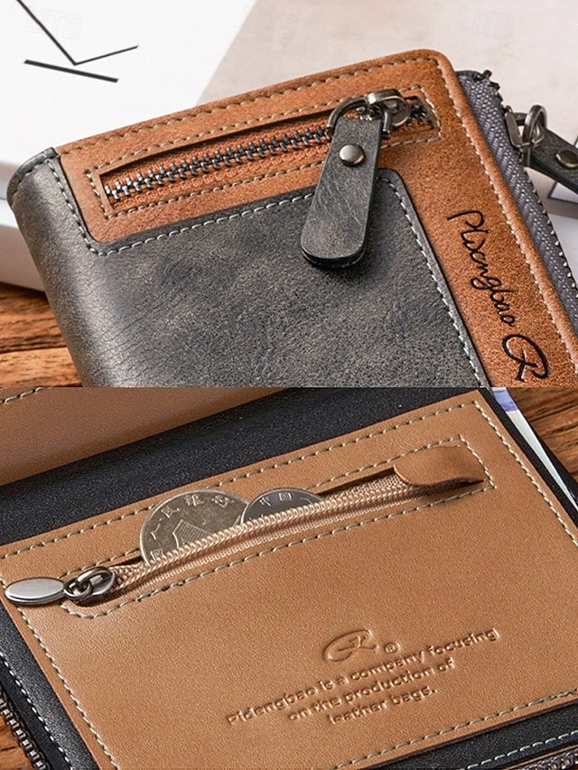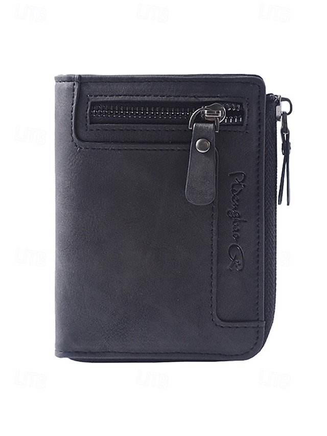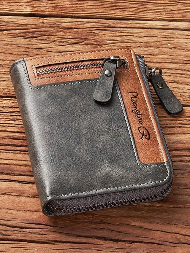 Gender: Men’s, Type: Credit Card Holder Wallet, Material: PU Leather, Embellishment: Zipper, Multiple pockets, Pattern: Solid Color, Adjustable strap: Non-Adjustable, Occasion: Father’s Day, Office, Casual, Width (cm): 9.5, Height (cm): 12.5, Length (cm): 2, Function: Lightweight, Durable, Category: Wallet,