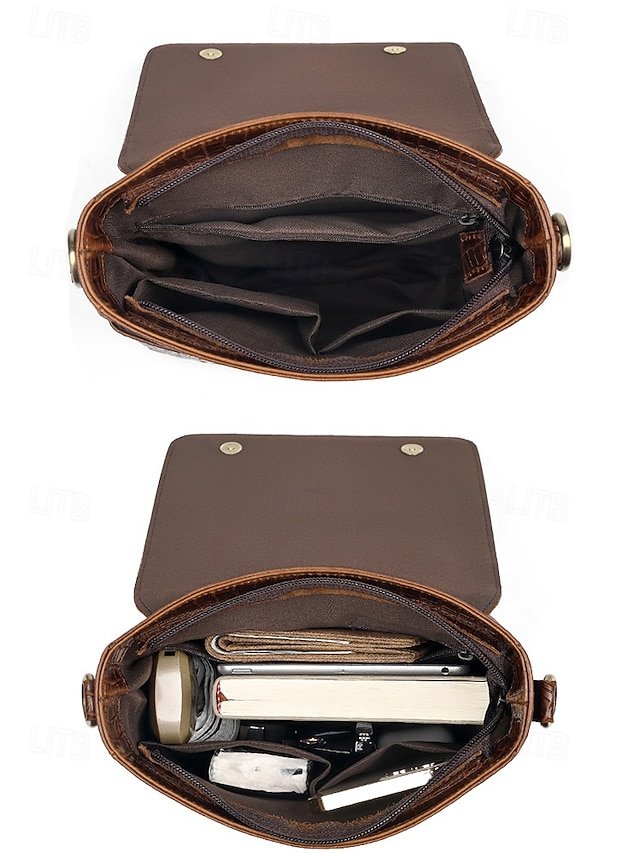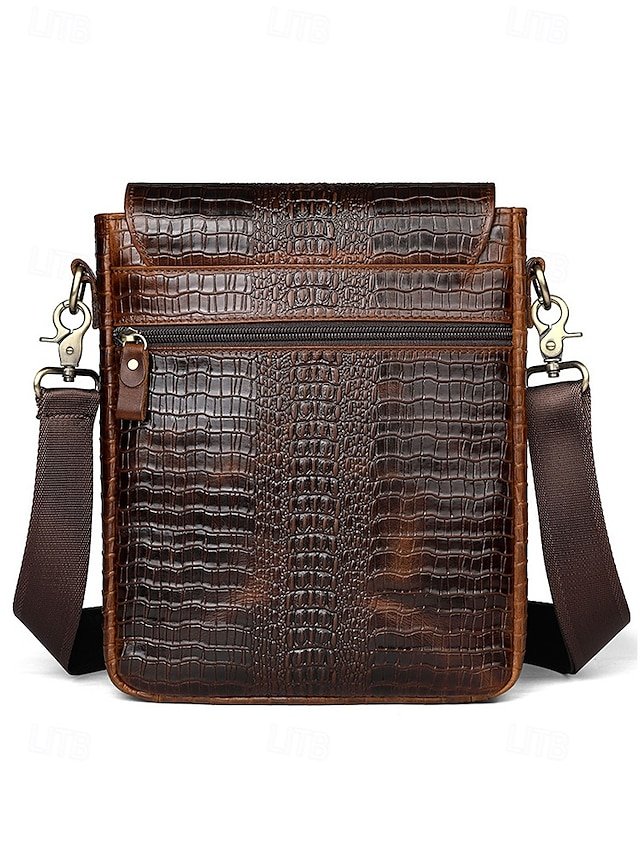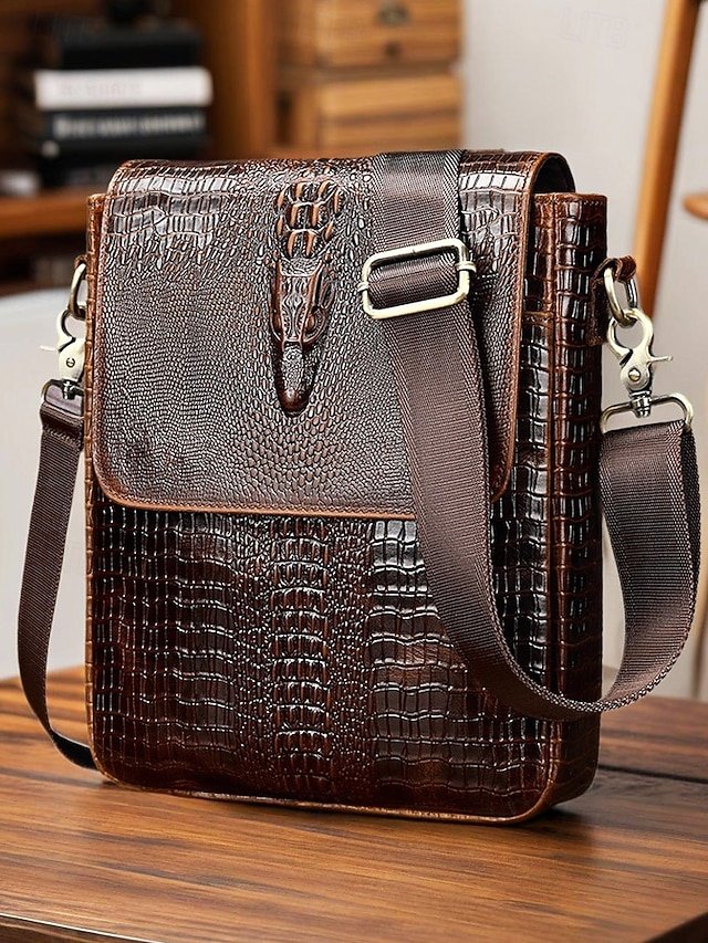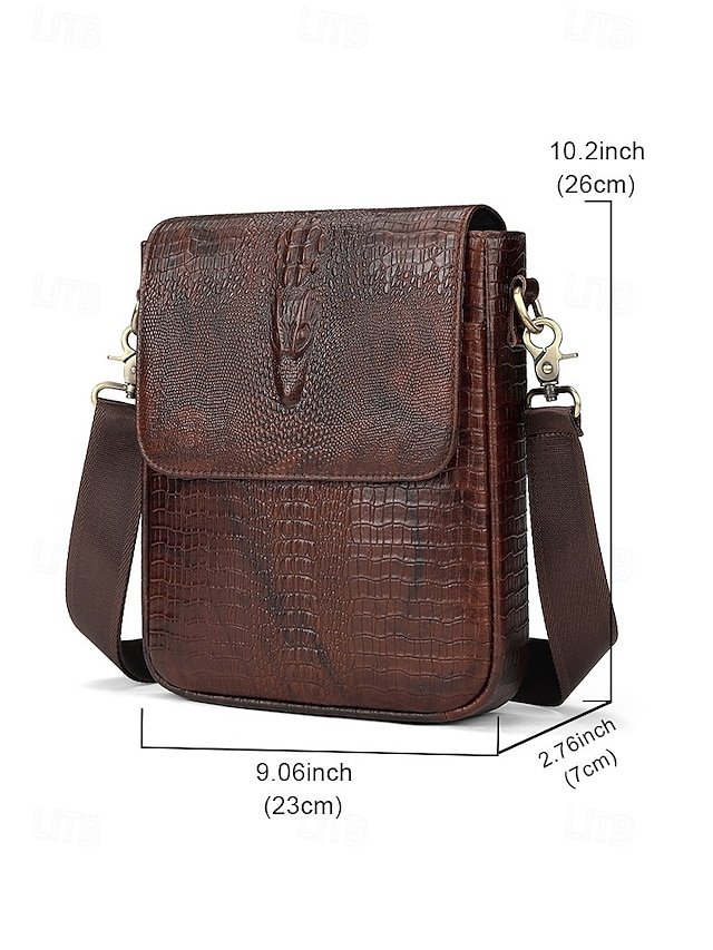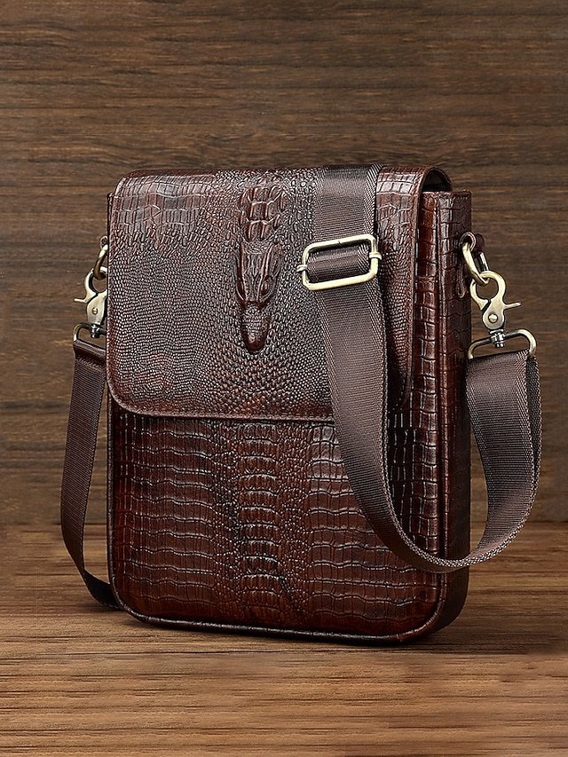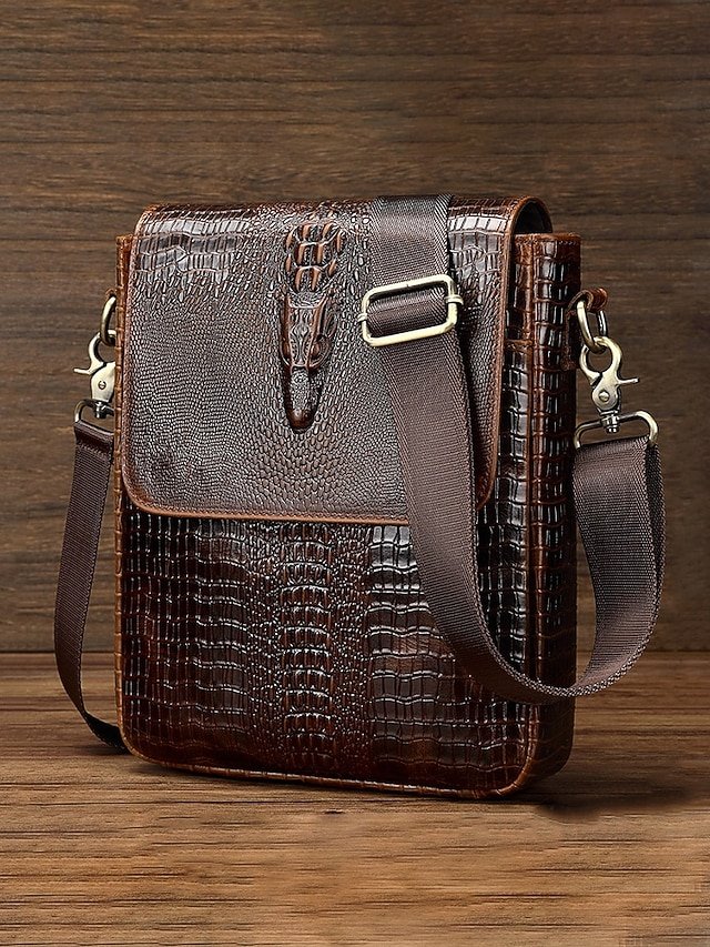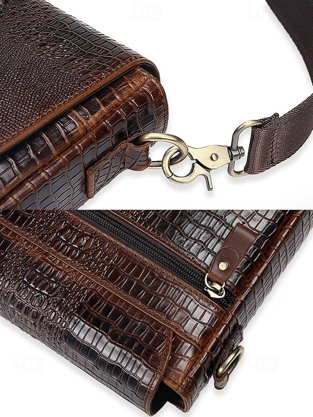Gender: Men’s, Type: Messenger Bag, Shoulder Bags, Material: Leather, Embellishment: Zipper, Multiple pockets, Pattern: Crocodile, Solid Color, Detachable strap: Non-Detachable, Adjustable strap: Adjustable, Occasion: Father’s Day, Office, Casual Daily, Casual, Width (cm): 23, Height (cm): 26, Length (cm): 7, Function: Waterproof, Large Capacity, Category: Crossbody Bag,