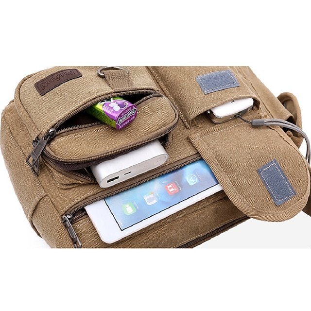 Men’s Multi-Pocket Canvas Crossbody Messenger Bag –