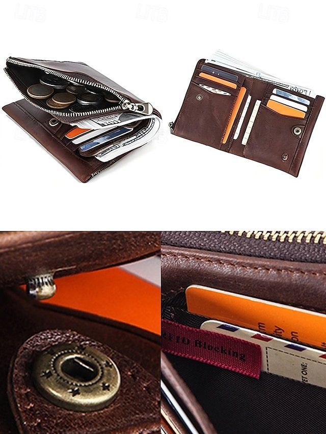 Gender: Men’s, Type: Credit Card Holder Wallet, Material: Leather, Embellishment: Zipper, Multiple pockets, Pattern: Solid Color, Adjustable strap: Non-Adjustable, Occasion: Office, Casual Daily, Casual, Width (cm): 1.5, Height (cm): 11, Length (cm): 9.5, Function: Lightweight, Large Capacity, Durable, Category: Wallet,