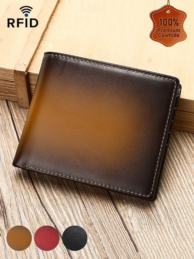 Gender: Men’s, Type: Credit Card Holder Wallet, Material: Leather, Cowhide, Embellishment: Zipper, Multiple pockets, Pattern: Color rubbing, Solid Color, Occasion: Casual Daily, Office, Width (cm): 2, Height (cm): 9.5, Length (cm): 11.5, Function: Large Capacity, Durable, Category: Wallet,