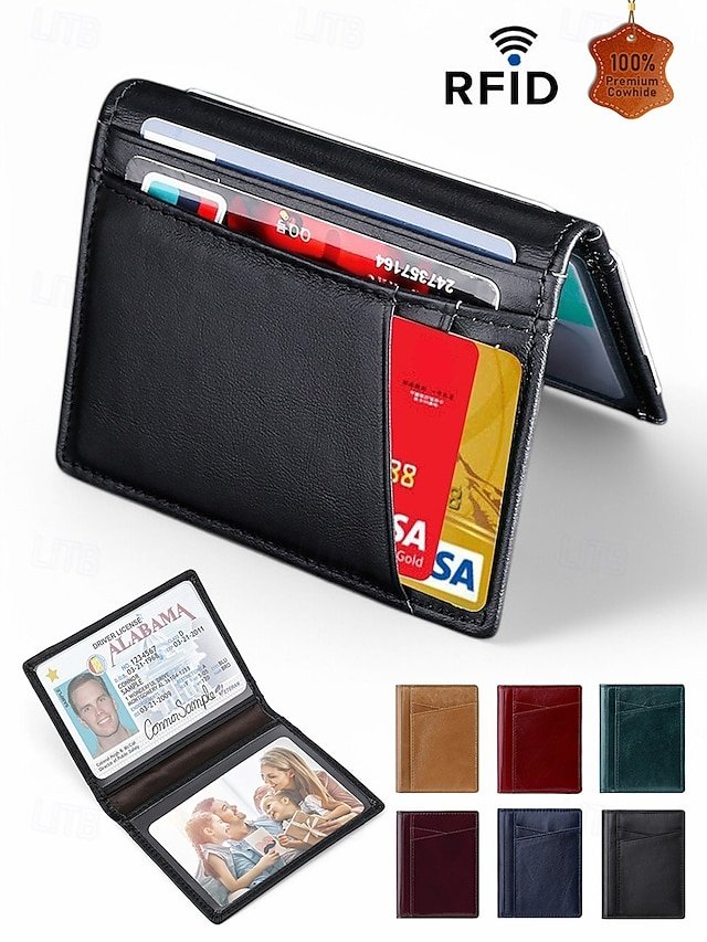 Men’s RFID Blocking Wallet, Premium Cowhide Leather, Slim