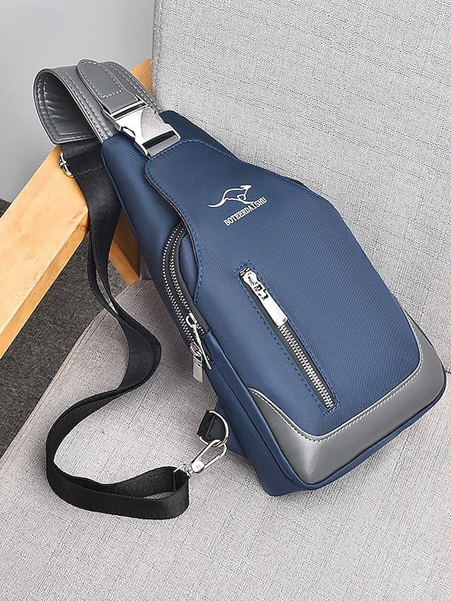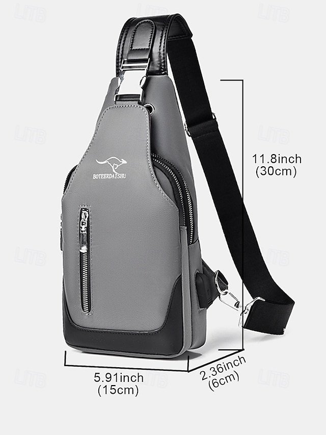 Gender: Men’s, Type: Chest Bag, Material: Oxford Cloth, Embellishment: Zipper, Multiple pockets, Pattern: Color Block, Solid Color, Detachable strap: Non-Detachable, Adjustable strap: Adjustable, Occasion: Daily, Casual, Outdoor, Travel, Father’s Day, Width (cm): 15, Height (cm): 30, Length (cm): 6, Function: Lightweight, USB Port, Waterproof, Category: Crossbody Bag, Shoulder Bag,