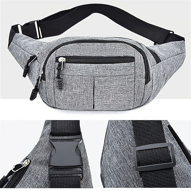 Unisex Multi-Pocket Canvas Crossbody Waist Bag, Adjustable Belt
