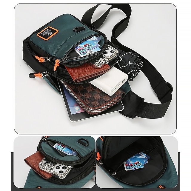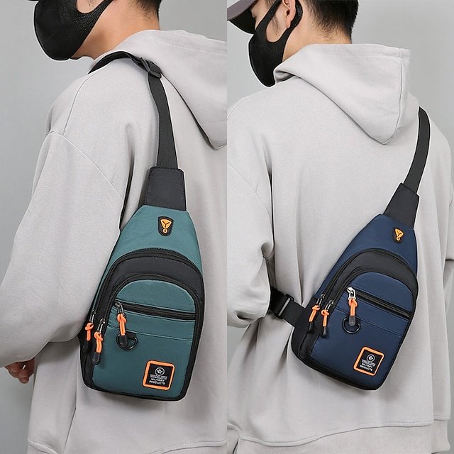 Gender: Men’s, Type: Chest Bag, Material: Oxford Cloth, Embellishment: Zipper, Pattern: Color Block, Patchwork, Occasion: Holiday, Daily, Outdoor, Width (cm): 6, Height (cm): 30, Length (cm): 18, Function: Lightweight, Large Capacity, Durable, Waterproof, Category: Crossbody Bag, Shoulder Bag,