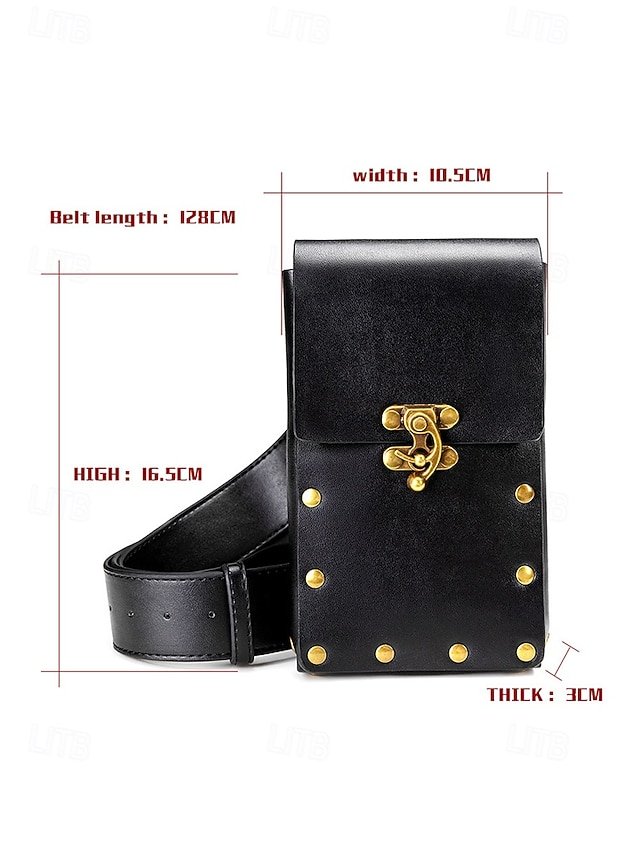 Gender: Women’s, Type: Mobile Phone Bag, Fanny Pack, Belt Bag, Material: PU Leather, Embellishment: Rivet, Pattern: Color rubbing, Solid Color, Detachable strap: Detachable, Adjustable strap: Adjustable, Occasion: Outdoor, Casual, Holiday, Width (cm): 3, Height (cm): 16.5, Length (cm): 10.5, Function: Lightweight, Category: Fanny Pack,