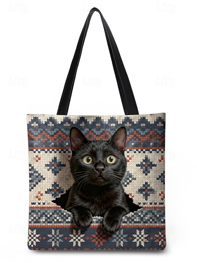 Gender: Women’s, Type: Shoulder Bags, Material: Polyester, Embellishment: Print, Pattern: Snowflakes, Cat, Occasion: Casual Daily, Christmas, Shopping, Width (cm): 4, Height (cm): 32, Length (cm): 34, Function: Lightweight, Large Capacity, Category: Tote,