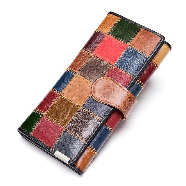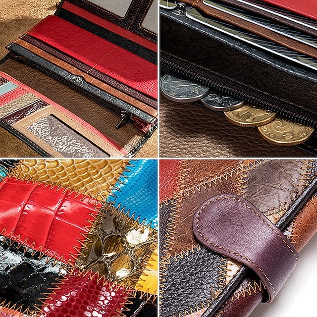 Women’s Genuine Leather Patchwork Wallet, Large Capacity