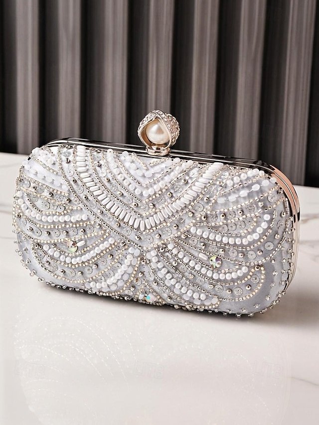 Elegant White Lace Evening Handbag with Pearl and Floral