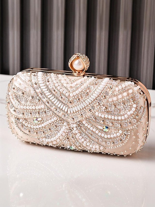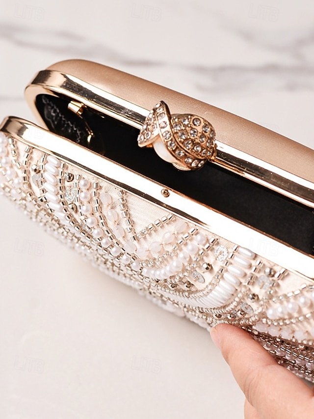Women’s Pearl Beaded Evening Clutch Bag with Gold Handle,