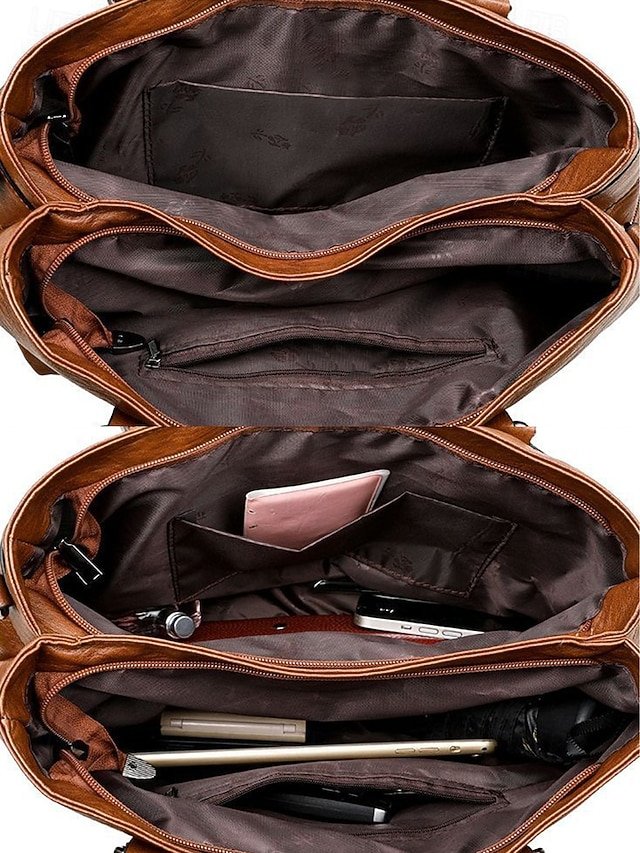 Women’s Large Faux Leather Shoulder Tote Bag with Multiple